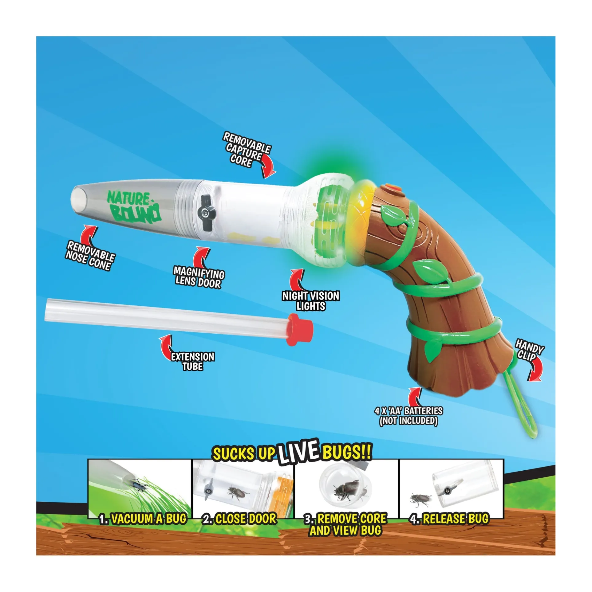 Magnifies bugs for up-close wonder