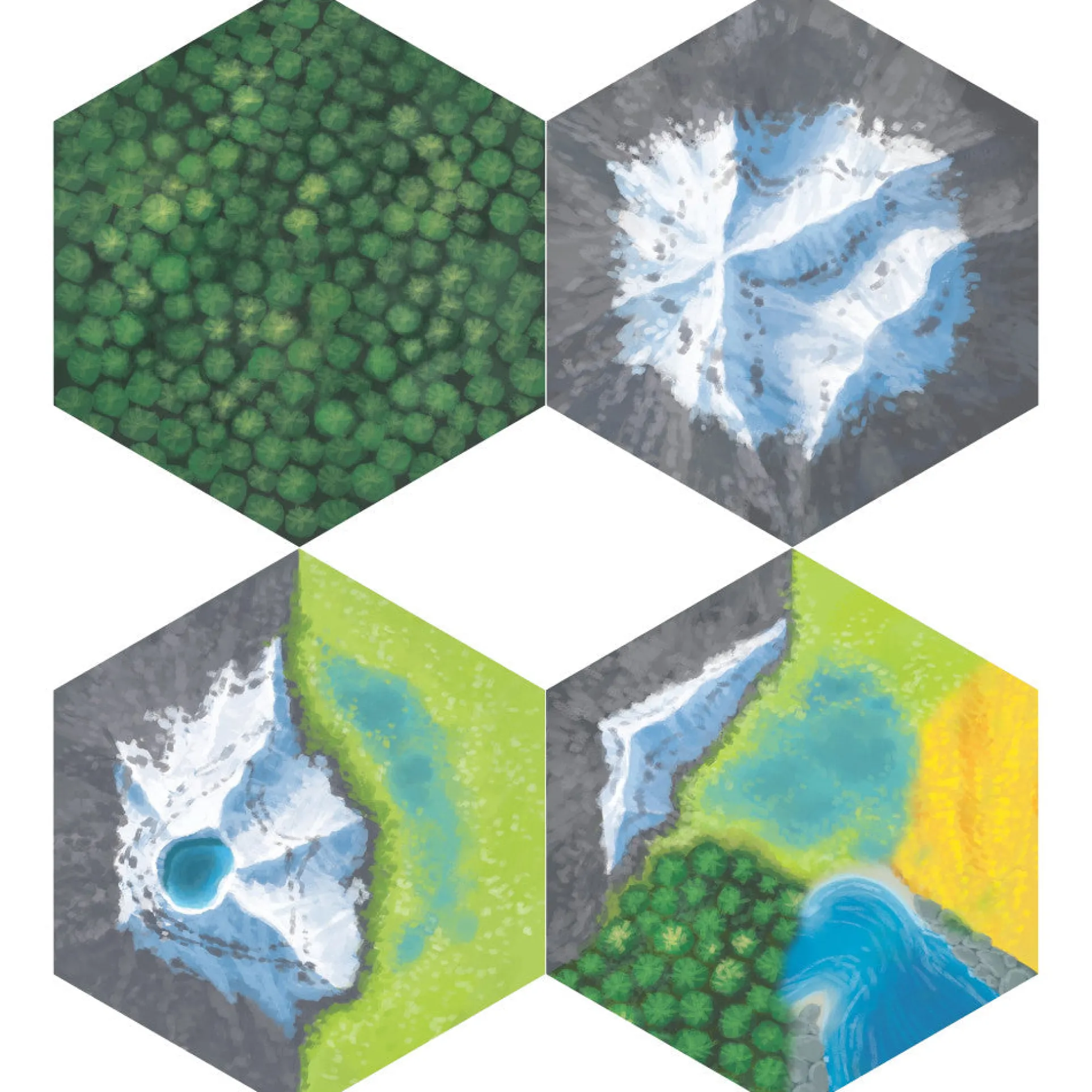 Features four ever-changing landscapes