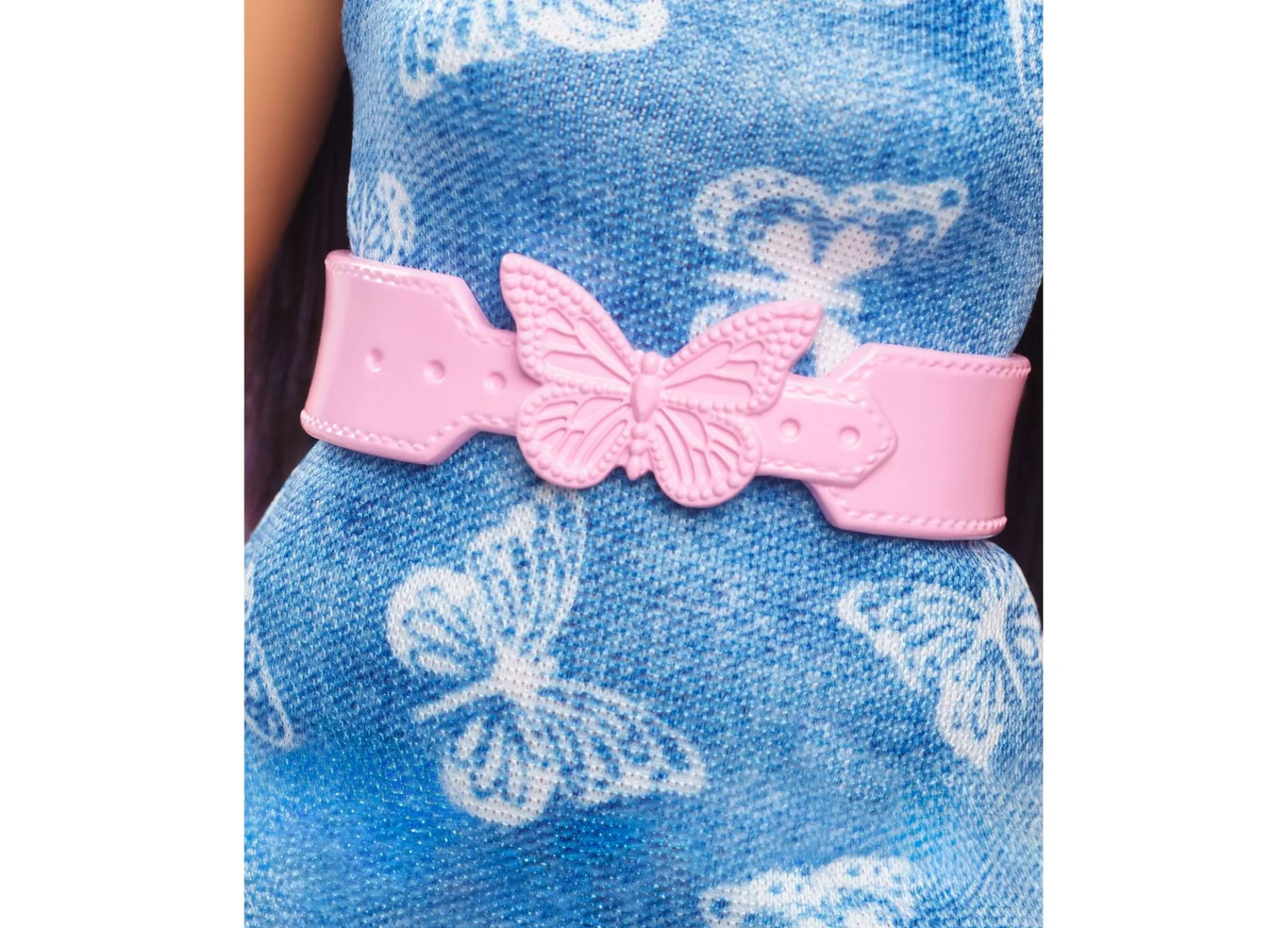 Flaunts a chic butterfly denim dress