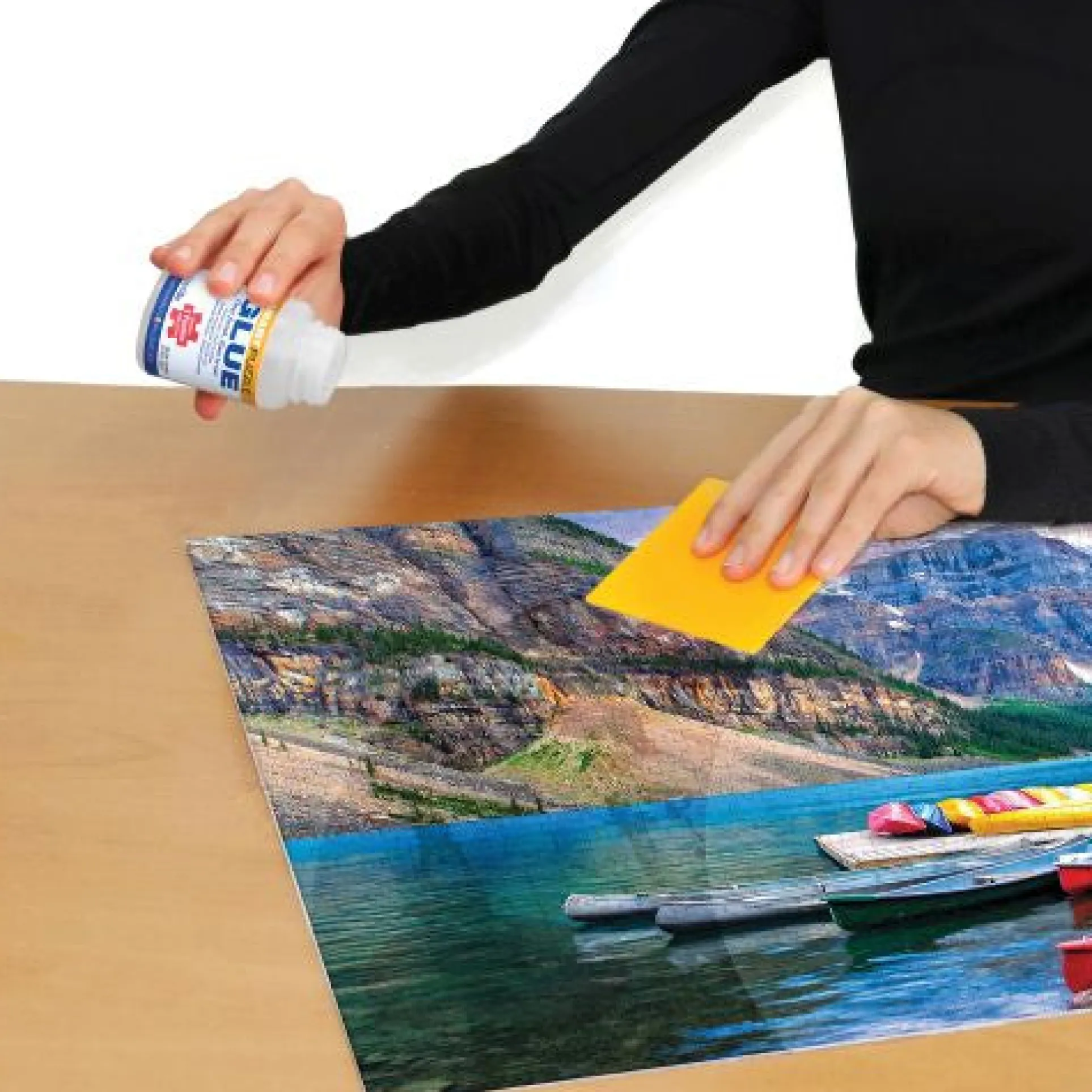 Preserves puzzles as art with crystal-clear glue