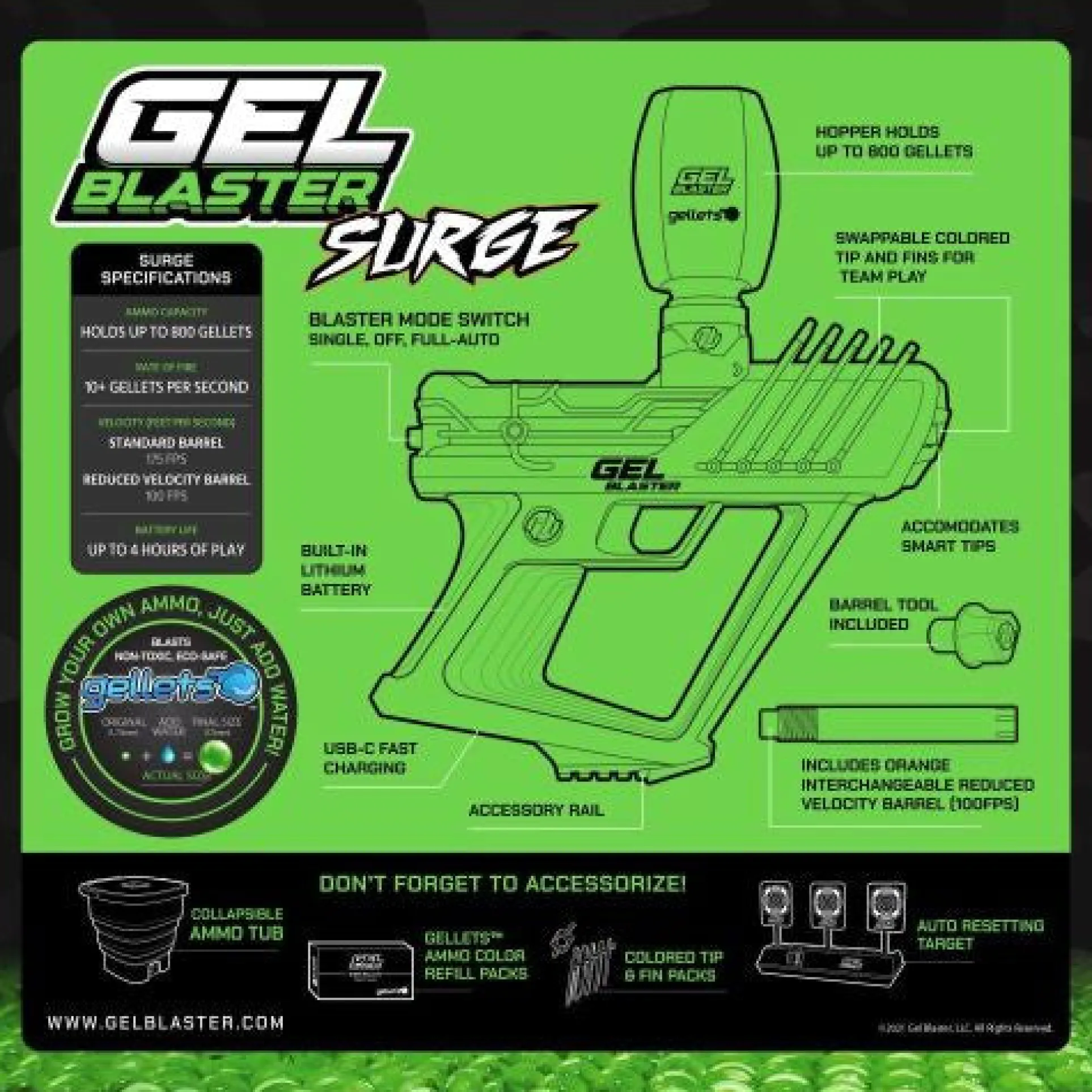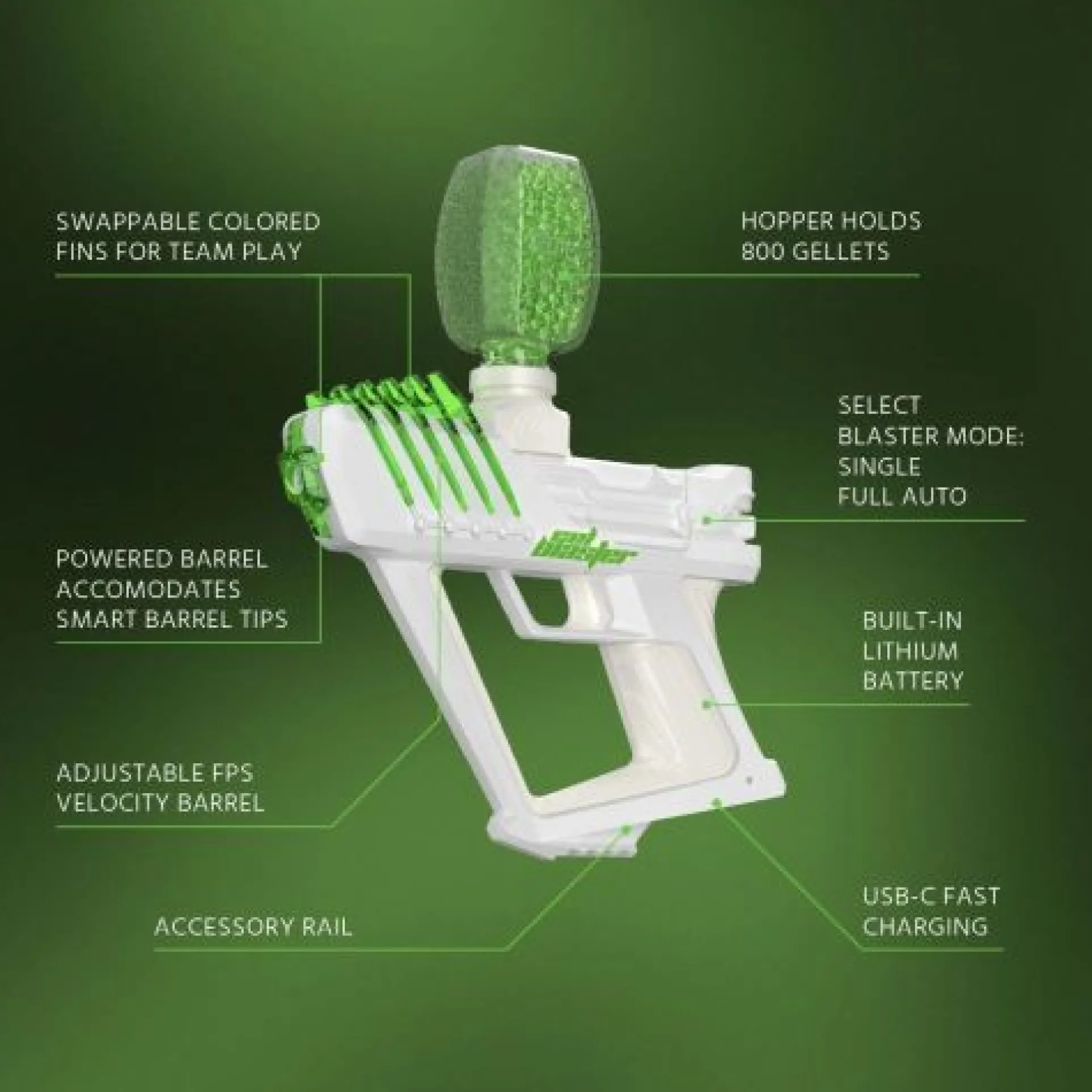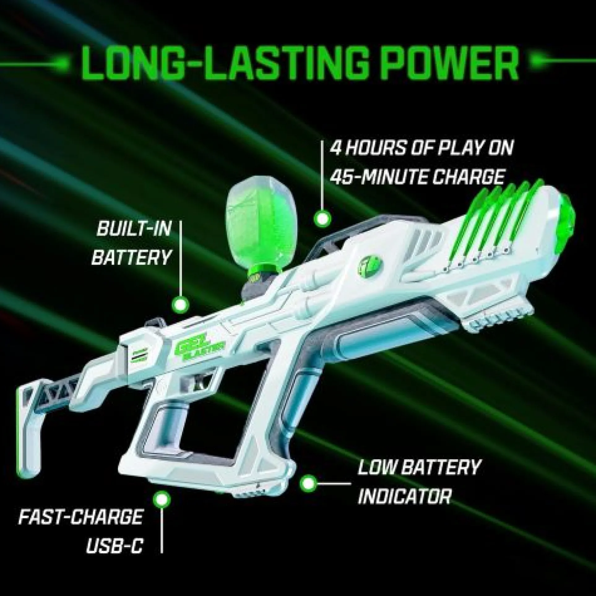 Holds 800 gel balls for non-stop fun