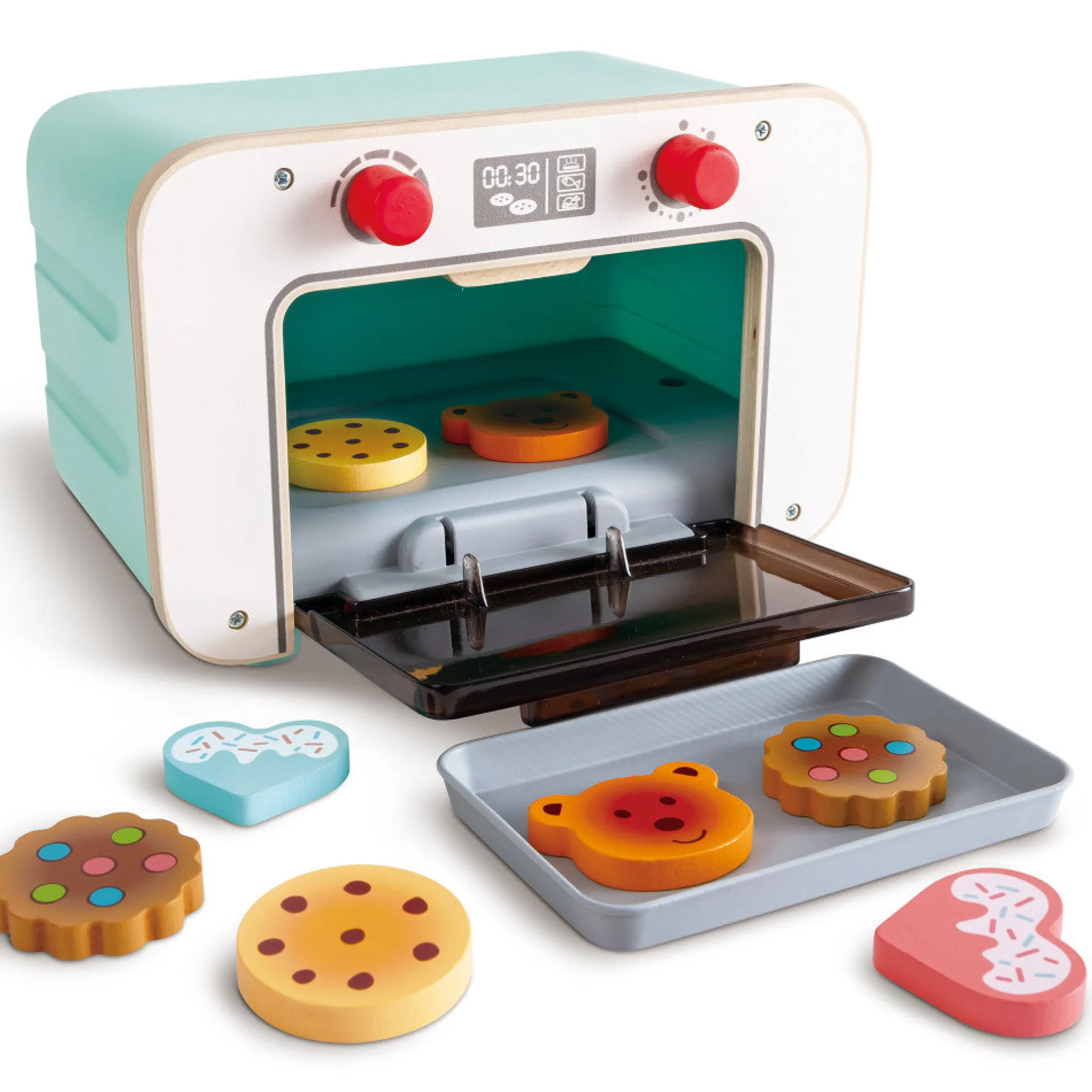 Comes with eight whimsical wooden biscuits