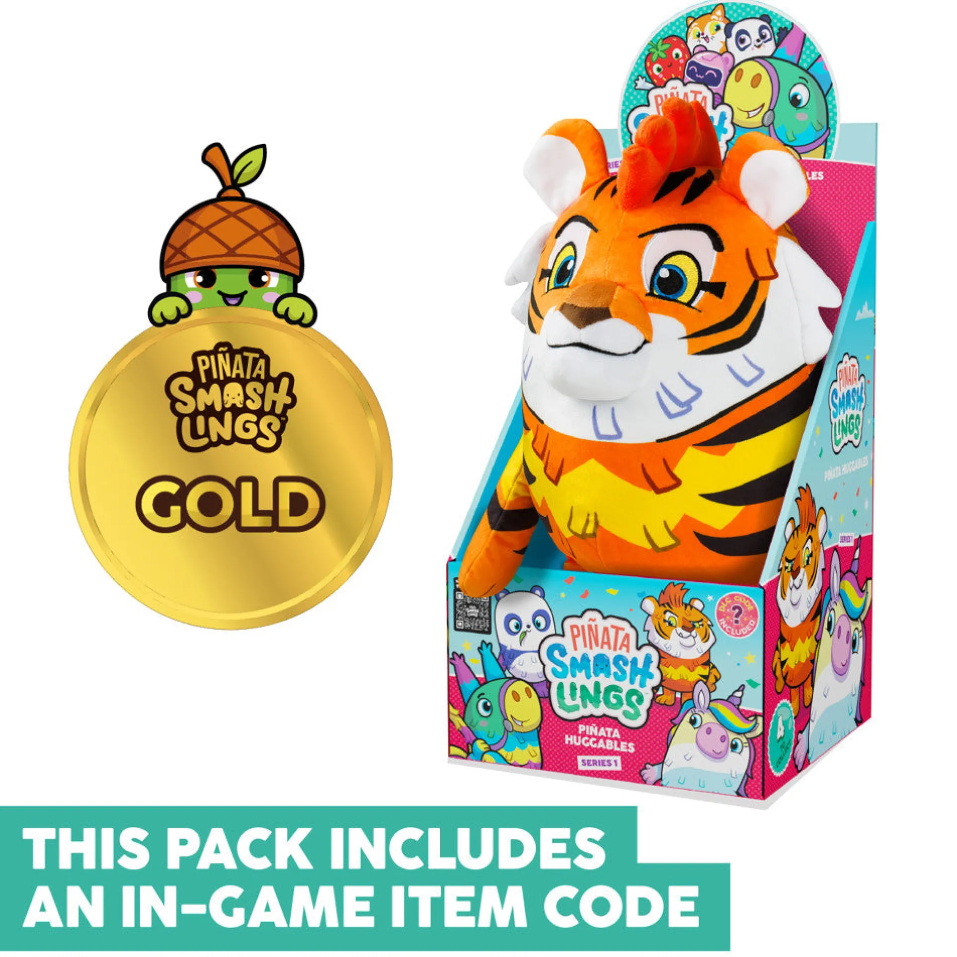 Piñata Smashlings Series 1 Mo the Tiger 12 inch Plush Toy with Digital Game Code