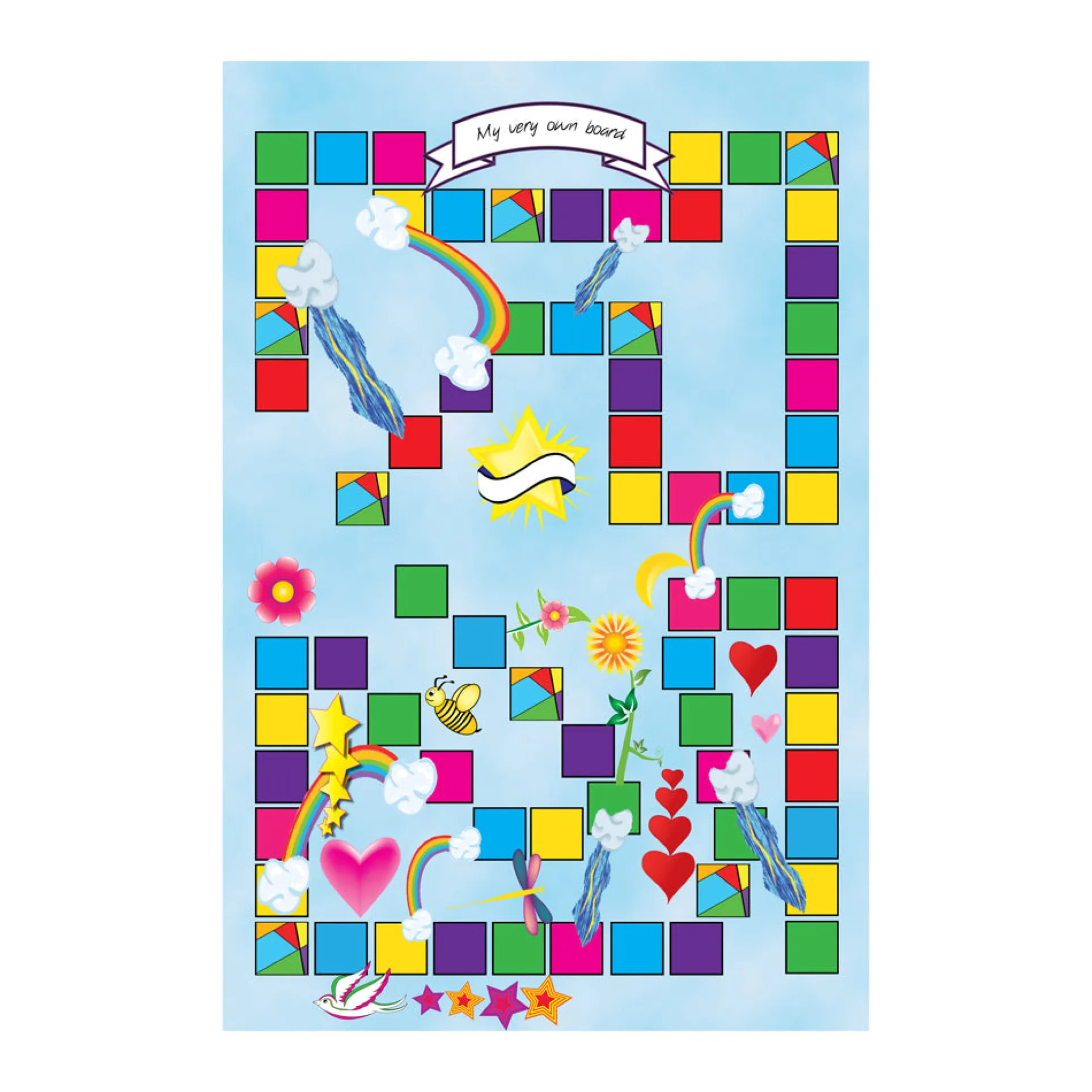 Navigates through vibrant rainbows and storms