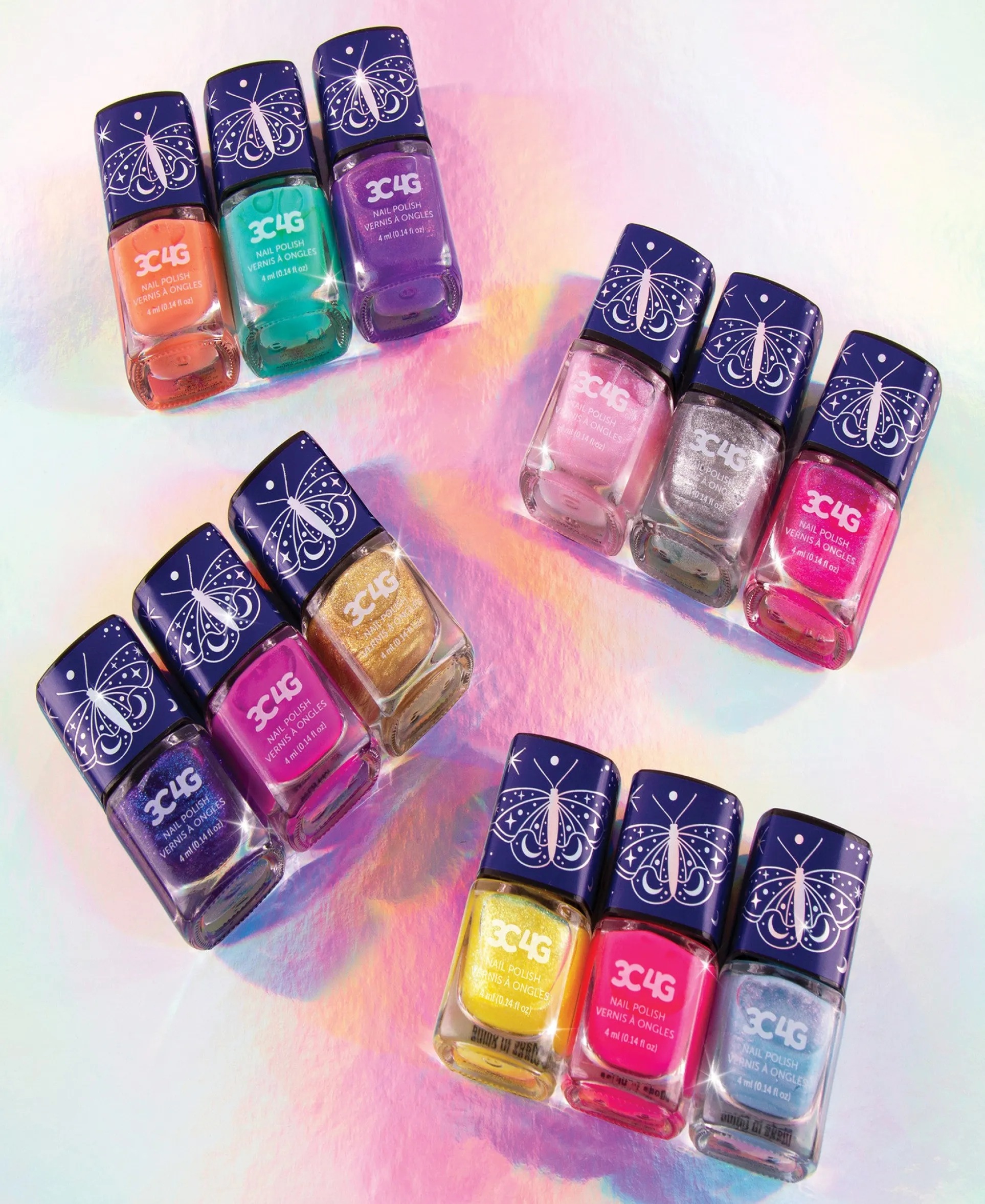 Mix and match finishes: solid, glitter, shimmer