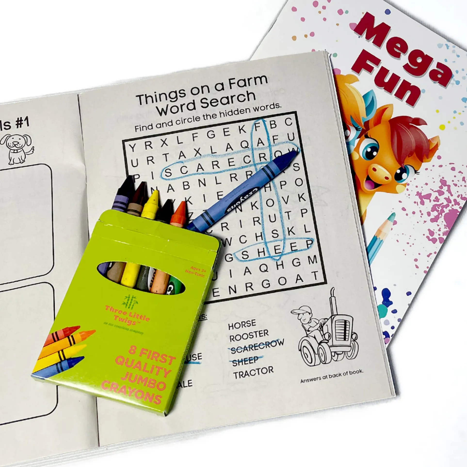 Includes crayons for instant art